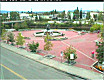 Blick auf die Golden Heart Plaza mit Chena River im Hintergrund. Downtown Fairbanks.