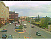 Blick auf die 2nd Avenue in Downtown Fairbanks mit Cafes, Geschäften und Strassen.