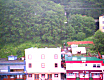 Blick auf Downtown Juneau mit Gebäuden, Geschäften, Strassen und Wald.