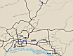 Nördlicher Blick auf Downtown Juneau, mit Hafen , Gebäuden und Strassen.