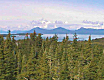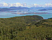 Die Kamera von CVT steht am Shoup Bay und zeigt die Bucht mit Wäldern und Bergen.