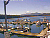 Die Kamera zeigt den Hafen mit Schiffen und Booten von Port Lion auf Kodiak Island.