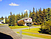 Die Kamera zeigt den Eingang des Kodiak College auf Kodiak, (Kodiak Island).