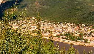 hatten wir dann einen sehr schönen Ausblick auf Dawson City und mußten nur noch über den Yukon. Aber zum Glück gab